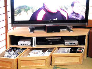 檜を使って和室に合うテレビ台を作りました。結構、気に入っているのでみなさんにもご紹介します。52型のテレビを置く台を探しましたが、なかなか気に入るのがありませんでした。日本家屋の場合、部屋には、壁があると窓があり、押入れがありと、液晶テレビを壁に貼り付けて置くというのはできません。それでコーナーに置いて和室にも合うように檜の無垢材を使ってつくりました。