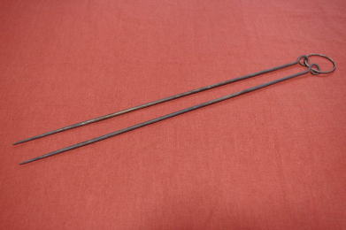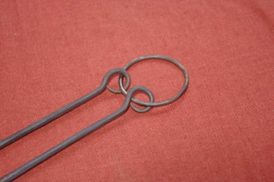 焼きを入れることによって錆びにくく、また、黒くなっています。長さ45cm(輪っかは含みません)。少し古めかして作っています。