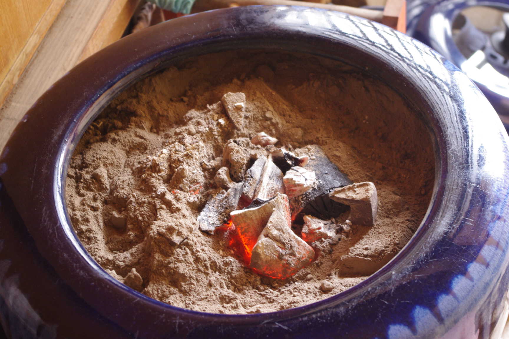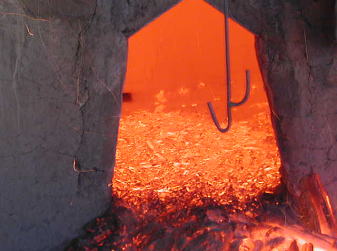 掃除の後は、薪に火を着けて、囲炉裏に火を入れ、風呂を沸かし、ご飯も炊きました。鍋ではブタ汁を煮て、紀州備長炭も熾して鮎と鶏肉も焼きました。
