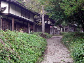 早朝の大平宿の古民家。すこし朝もやが掛かっていて、なんともいえない気持ちのいい朝でした。村の中を流れている小川で顔を洗いました。 |