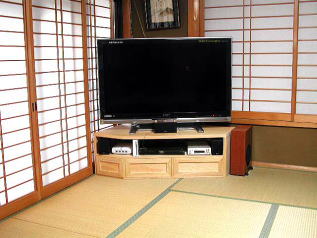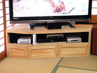 檜を使って和室に合うテレビ台を作りました。結構、気に入っているのでみなさんにもご紹介します。52型のテレビを置く台を探しましたが、なかなか気に入るのがありませんでした。日本家屋の場合、部屋には、壁があると窓があり、押入れがありと、液晶テレビを壁に貼り付けて置くというのはできません。それでコーナーに置いて和室にも合うように檜の無垢材を使ってつくりました。